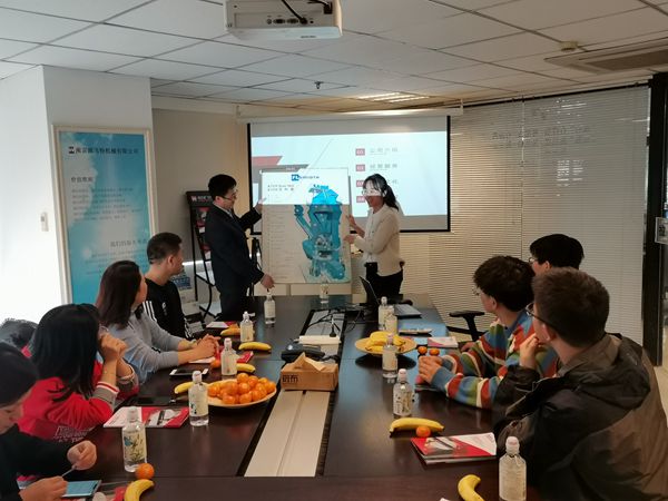 首先在施余国总经理带领下,参观了企业办公环境。企业人事负责人何孟菲详细地介绍了公司的情况,公司旗下拥有两家子公司,同时作为机械制造的佼佼者,企业也与德国机械制造的相关企业有着紧密的合作,一定程度上给了学生更大的发展平台。人事部经理黄国学对企业文化和工作职业进行了解读,就毕业生比较关心的实习期间住宿、薪资及职业发展进行了介绍,使得学生对企业各方面有了更直观的认识。施余国也邀请师生们有机会去在马鞍山和溧水的两个工厂实地去参观和考察。参观的机械制造与自动化专业和电气工程自动化专业的几个毕业班学生也表达了顶岗实习选择该企业的意愿。